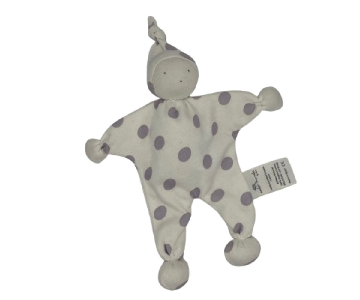 Organic baby comforter in white with lavender spots. If you are looking for a neutral baby gift, this baby comforter would be ideal. These comforters are designed to soothe and provide comfort to babies.
