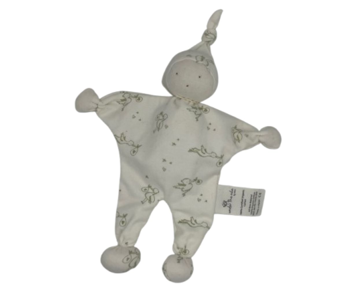Organic baby comforter in white with storks design. If you are looking for a neutral baby gift, this baby comforter would be ideal. These comforters are designed to soothe and provide comfort to babies.