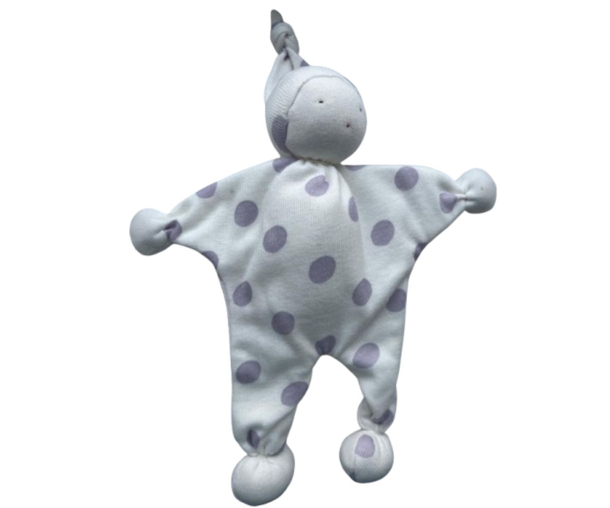 Organic baby comforter in white with lavender spots. If you are looking for a neutral baby gift, this baby comforter would be ideal. These comforters are designed to soothe and provide comfort to babies.
