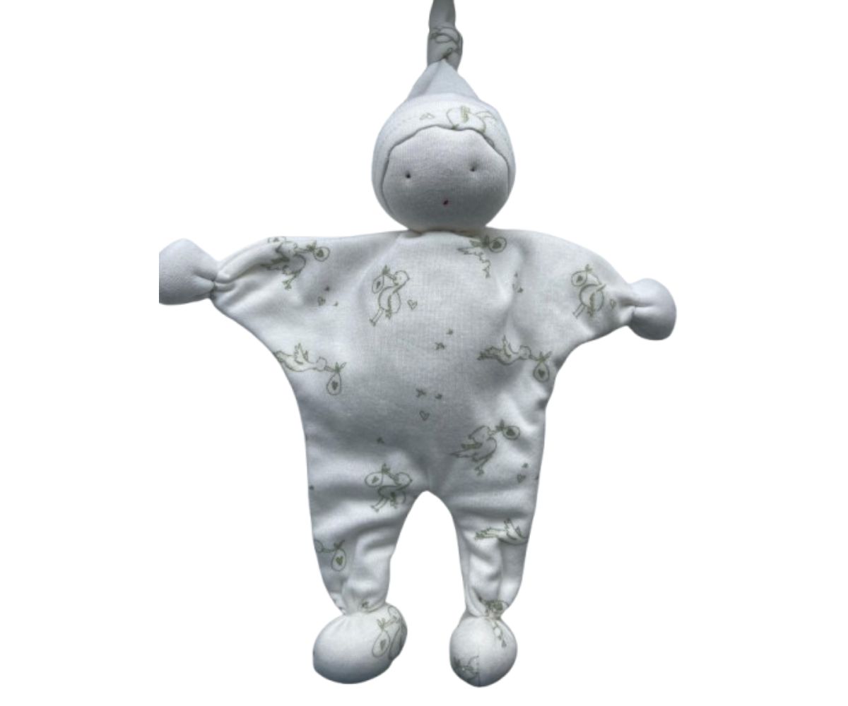 Organic baby comforter in white with storks design. If you are looking for a neutral baby gift, this baby comforter would be ideal. These comforters are designed to soothe and provide comfort to babies.